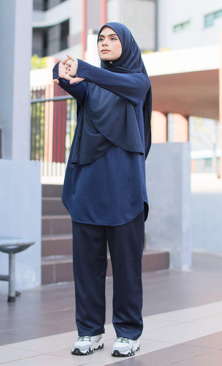 Made with breathable, performance-ready fabric, Kimyra sportswear provides comfort without compromising modesty. The structure is carefully designed to maintain coverage during movement, prevent fabric from riding up, and ensure the silhouette remains modest from every angle.