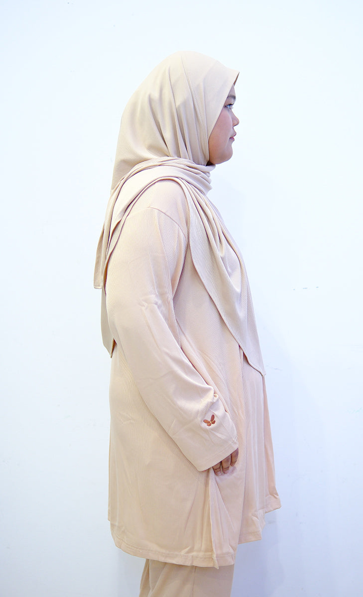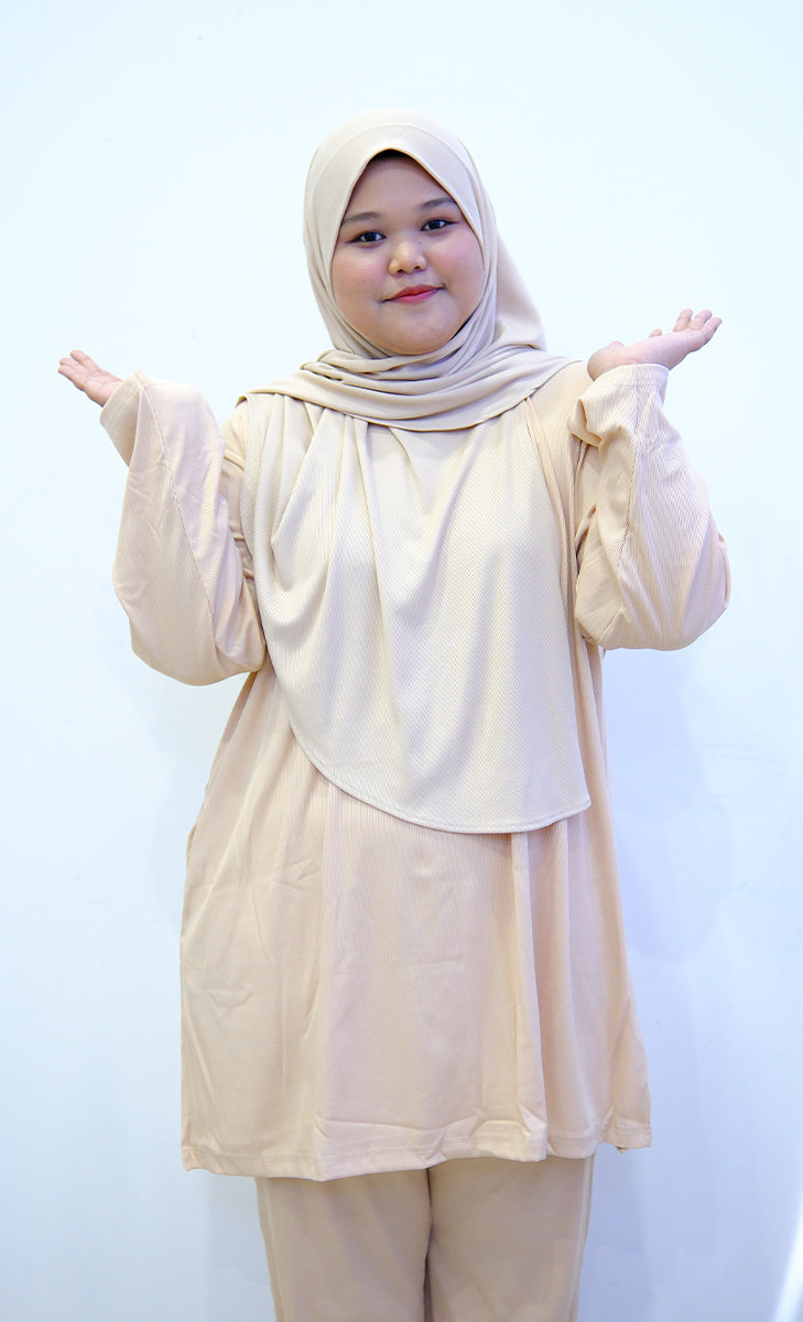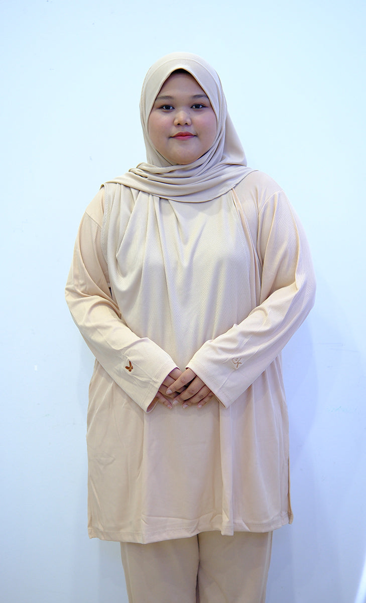 Unlike most brands, Kimyra was born from the real struggles of Muslim women who wanted to stay active without compromising their modesty. We design every piece with real feedback from our community. Our cuts flatter plus size bodies, especially around the arms, hips, and belly area—no tight sleeves, no sheer fabric, no awkward fitting.