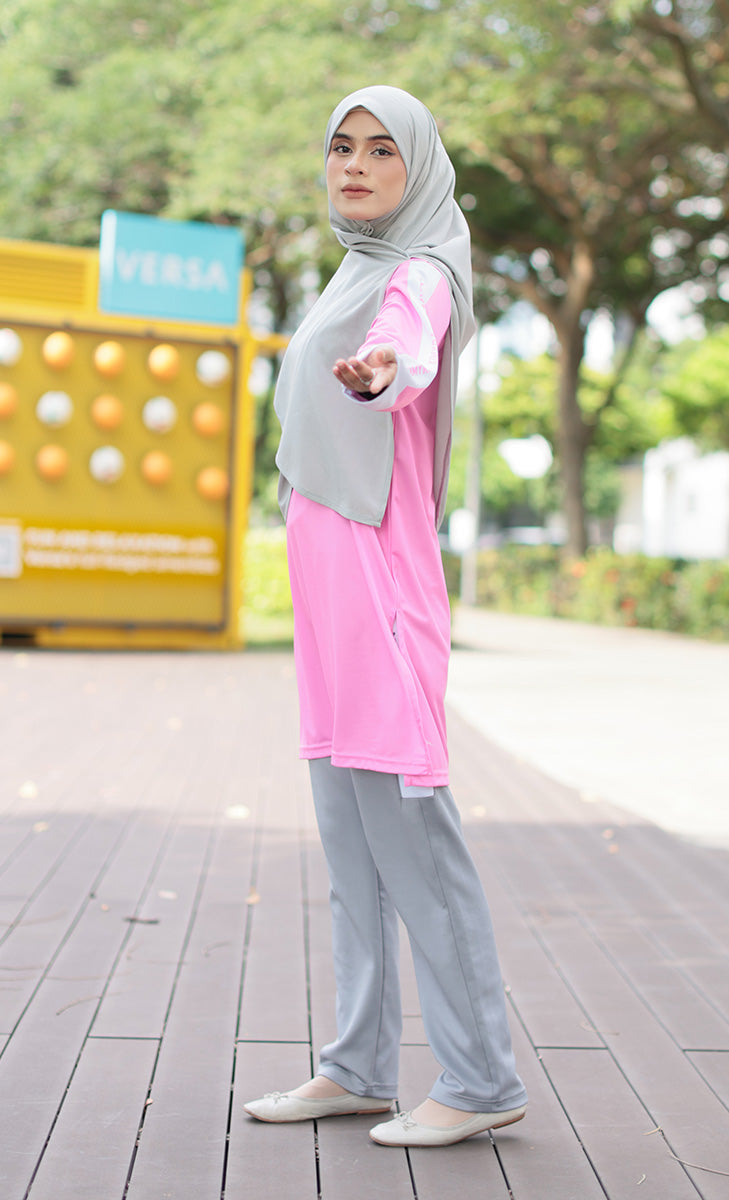 Baju sukan jersi ini diperbuat dari fabrik microfibre yang sejuk dan breathable, jadi anda akan sentiasa selesa ketika beraktiviti. Set tudung sukan dan seluar sukan juga ada melengkapkan penampilan anda supaya cantik ketika bersukan.