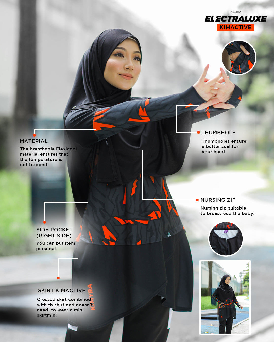 KimActive Electraluxe is the latest muslimah sportswear that can be used for sports and swimming. Feel more confident as our tops will cover your body in modest way. You'll feel more secure and improve your performance. Now you can do your activity without any limit!