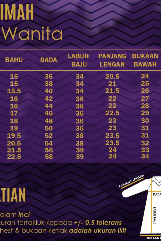 > Standard fit for male and A-cut for muslimah for a relaxed, easy feel