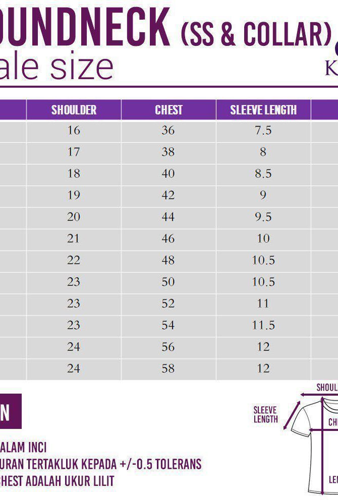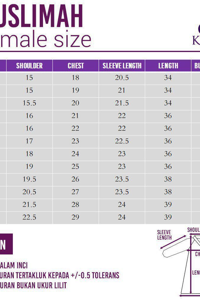 > Standard fit for male and A-cut for muslimah for a relaxed, easy feel