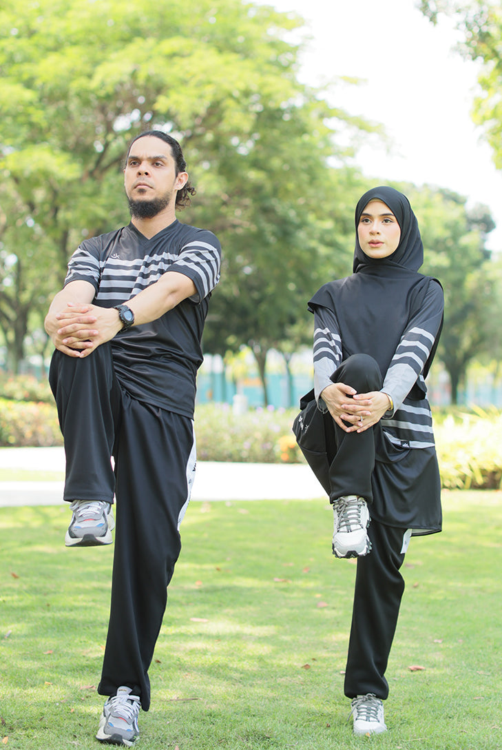 Kimyra designed Modest couple activewear for couples who prefer to dress modestly while exercising together. The term "modest activewear" can refer to clothing that covers the body more fully, and can be worn by both men and women.