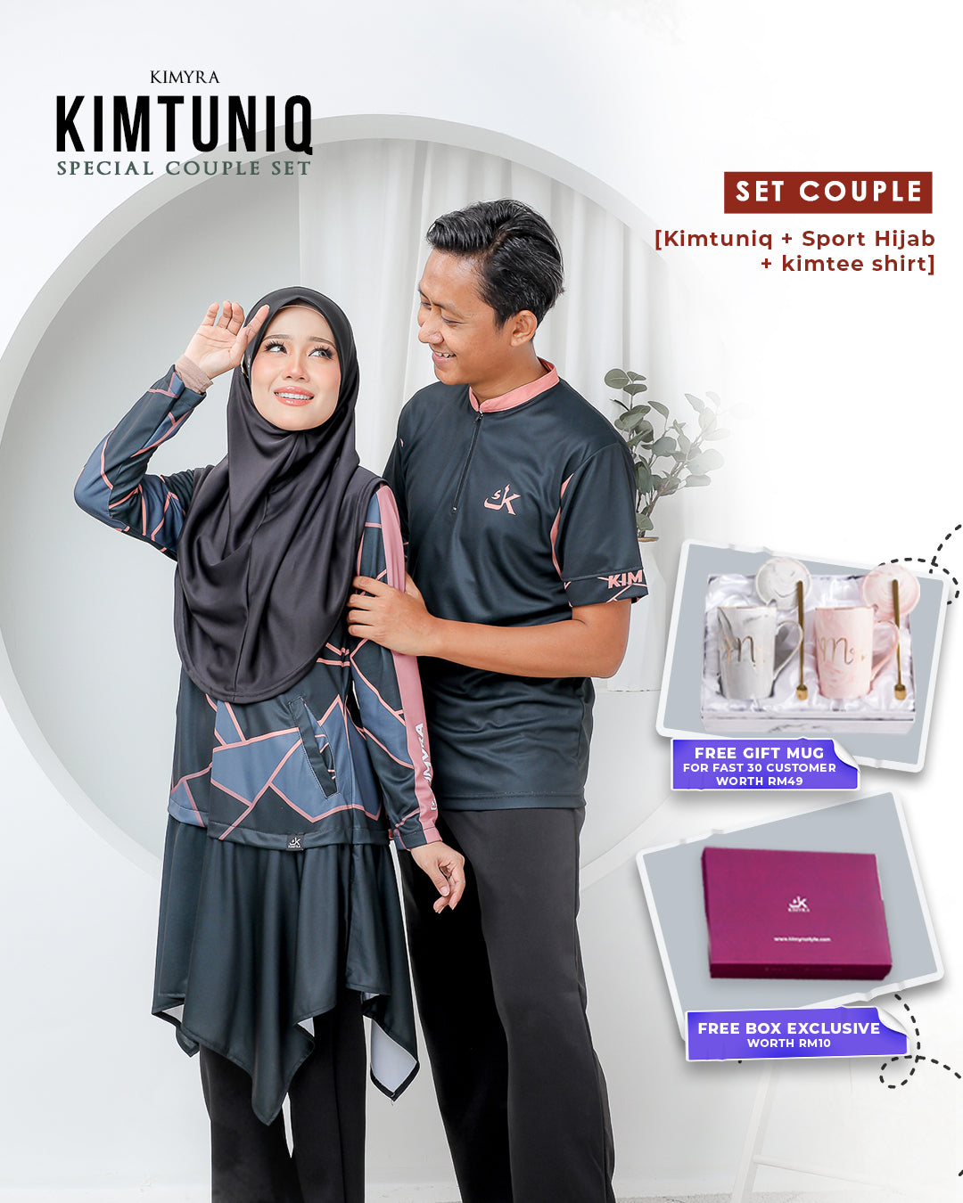 Kimtuniq couple set is the couple pairing of the latest muslimah jersey revolution, Kimtuniq with its simple yet attractive colours that speaks character of a wearer - unlike the usual muslimah jersey in the market. It’s not just for sports, but more than that; Perfect for casual events, for sightseeing, to enjoy your shopping time in the mall, and more!