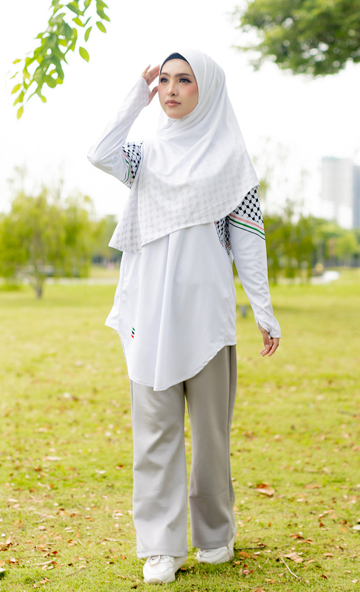 Introducing Kimyra Keiffiyeh – a limited-edition modest activewear collection for Muslim women who value both style and solidarity. Inspired by the iconic Palestinian Keffiyeh pattern, this collection is more than just clothing – it’s a statement of resilience, identity, and strength.