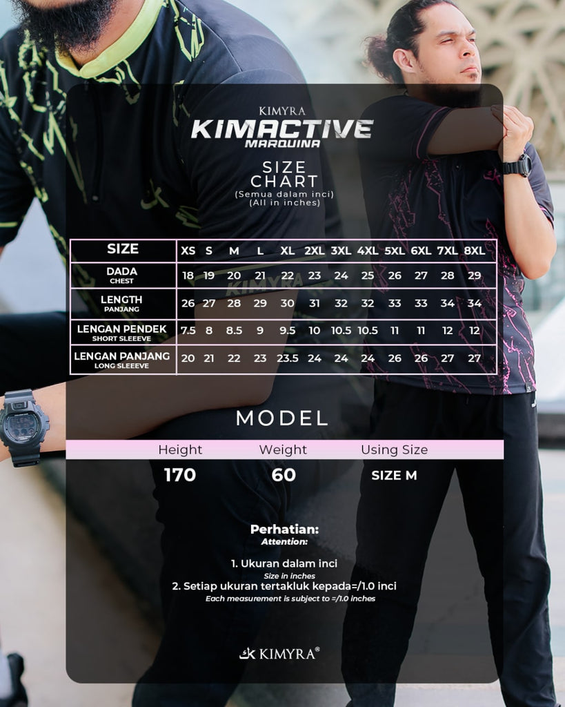 Kimyra Kimtee Shirt Marquina is the couple pairing of the latest muslimah jersey revolution, Kimactive Marquina with a marbled design twist based on the Kimactive collection - unlike the usual men jersey in the market. It’s not just for sports, but more than that; Perfect for casual events, for sightseeing, to enjoy your shopping time in the mall, and more!