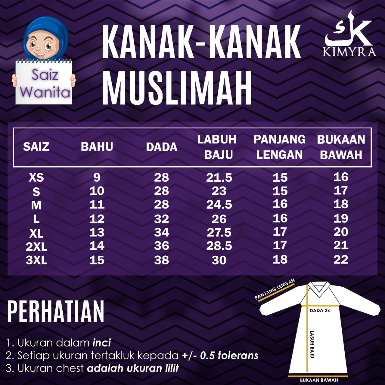 KKCM 03 - DARK BLUE MUSLIMAH KIDS - KIMYRA CATICORN